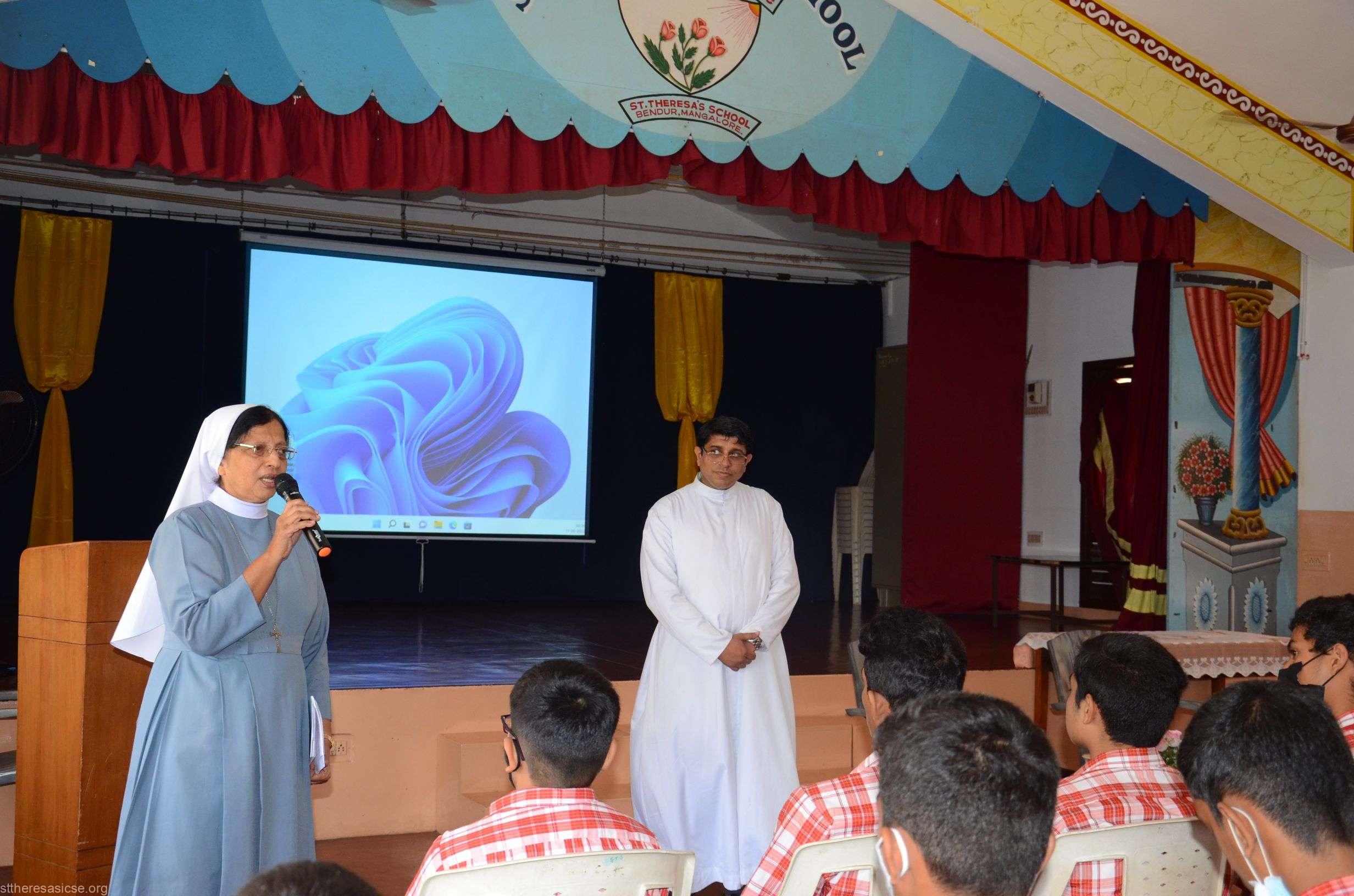 St Theresa's School conducted a seminar for the Bethany Champions of classes 8, 9, and 10 on 17th June 2022. Rev. Fr. Vinod Lobo from the Mangalore Diocese was the resource person for the day. Mrs. Savita Albuquerque accorded a warm welcome to the gathering. An inspirational video was shown by the resource person to begin the session. A Powerpoint Presentation was put up by the resource person and the following points were explained to the students: 1. Motto: To Love God and to Love our neighbour. 2. What is your identity? 3. Definition of Bethany Champions. 4. What is to be a Bethany Champion? 5. What is God Experience? An activity was conducted for the students to introspect themselves and to connect themselves with God. The inspirational talk given by the speaker was helpful for the students to experience the Gospel values in their day-to-day life. The session ended with words of gratitude by the Vice Principal, Sr. Caron.