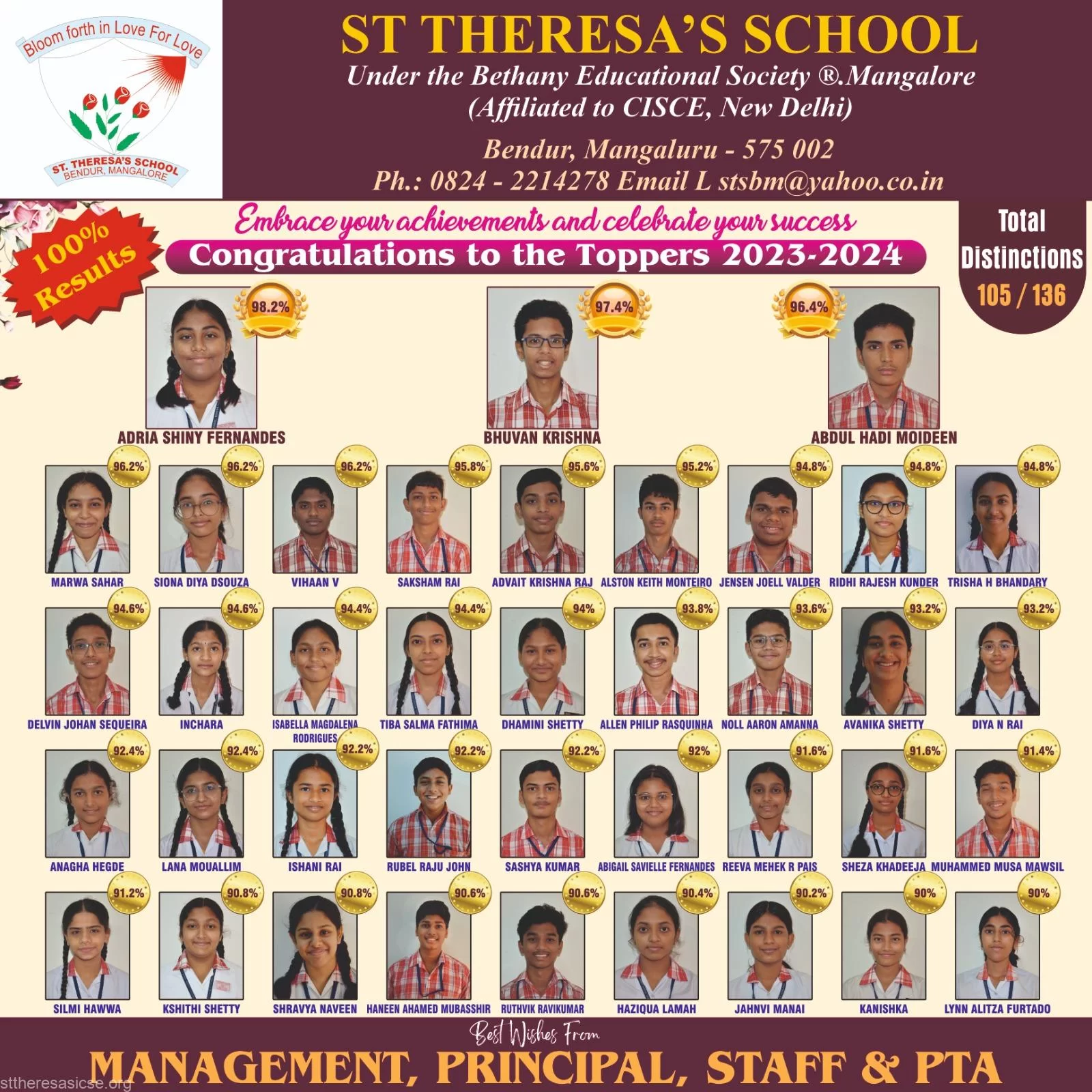 We the Theresians are thrilled to share the the outstanding results of the board examinations 2023-24 conducted by CISCE. The dedicated efforts of our students