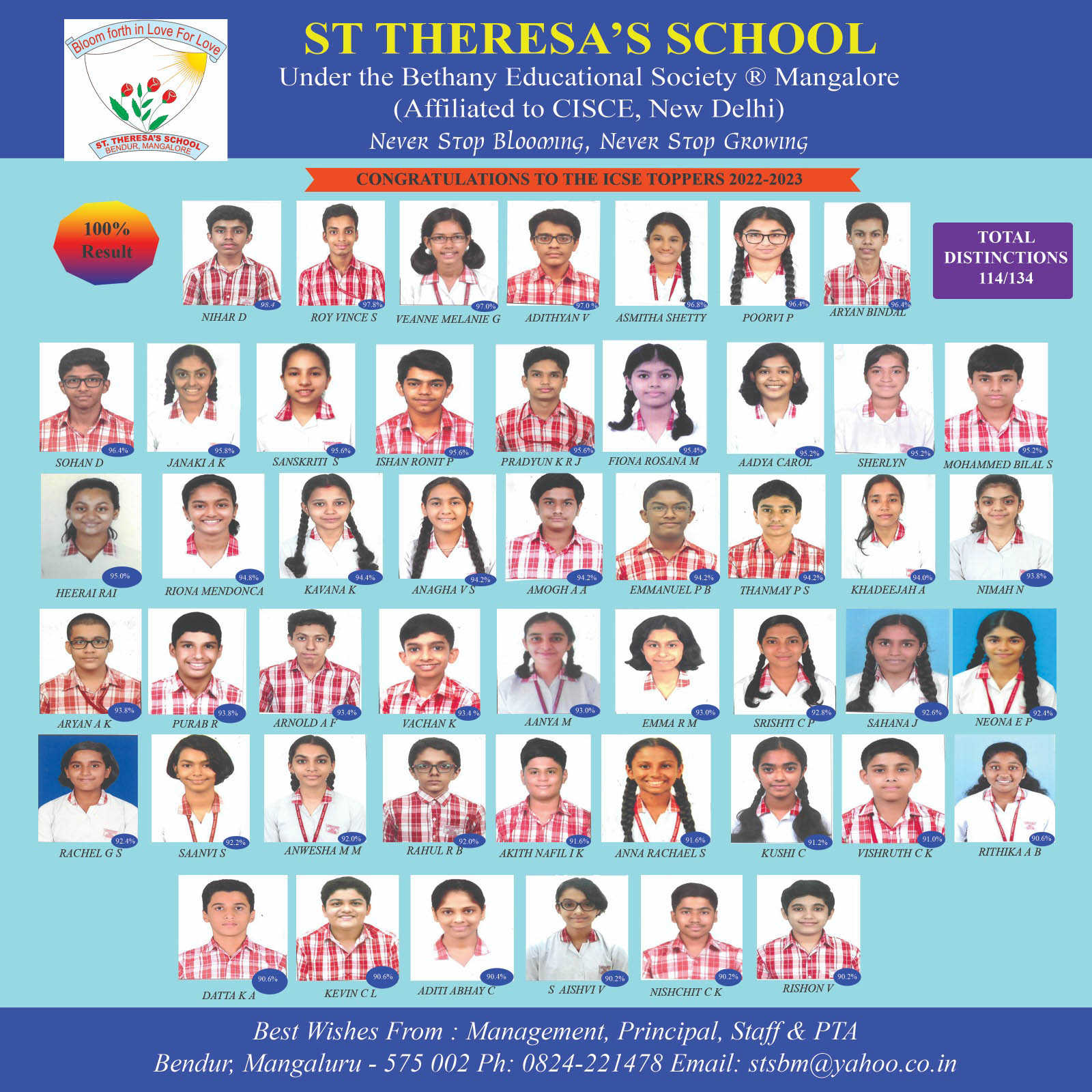 Theresians came out brilliantly in the reviews of the ICSE Board of Directors 2022-23 with 100% Results, 114 getting Accolades. Congratulations to you dear.