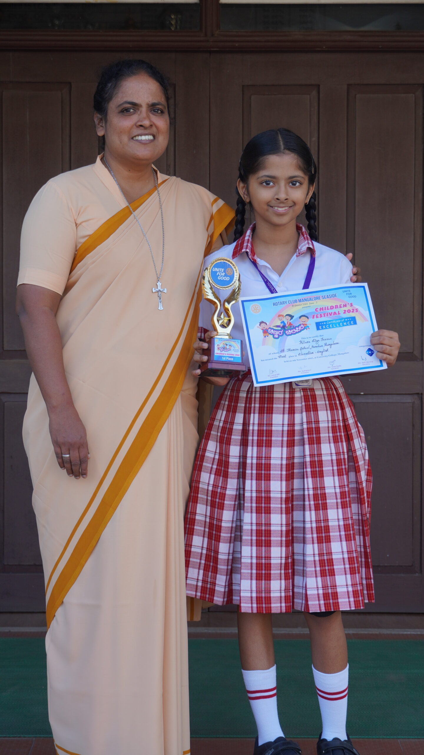 Congratulations to Kiara Liza Ferrao on winning 1st place in the English Elocution category at the Chinnara Chilipili Competition conducted by Rotary Club Mangalore Seaside