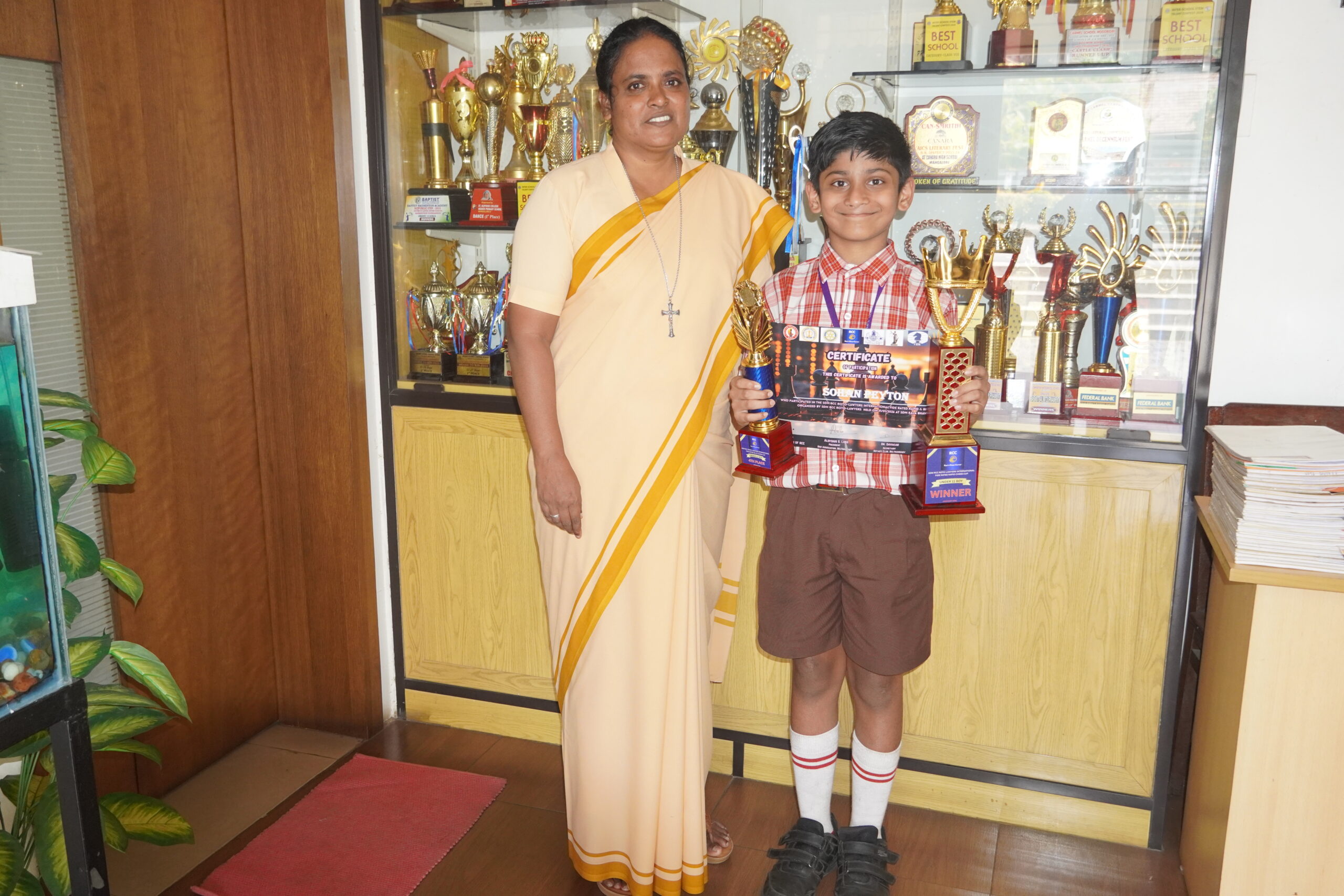 Congratulations to Sohan Payton Fernandes of Class VA for participating in the International FIDE-Rated Rapid Chess Tournament held at Belthangadi. He won 4th Place in