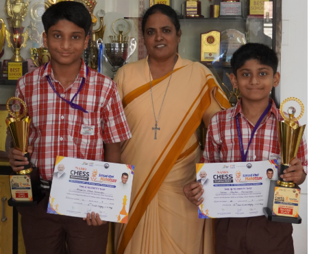 Kiyara Prakash Sheka of Class 5D participated in the International Open Rapid FIDE-Rated Chess Tournament 2026 held at Puttur and won First Place in the