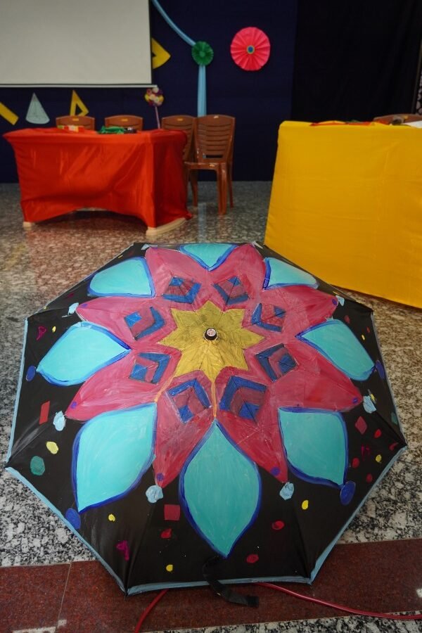 Math in Art – Umbrella Painting: Students showcased their artistic flair by painting umbrellas with intricate geometrical patterns, creatively merging art with mathematics.