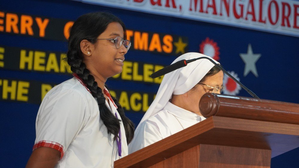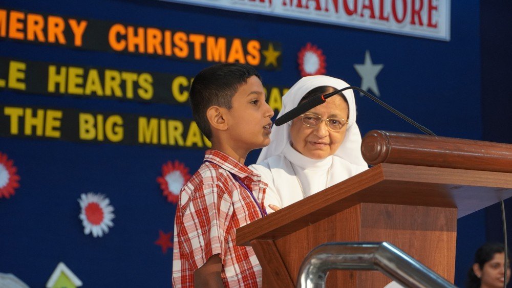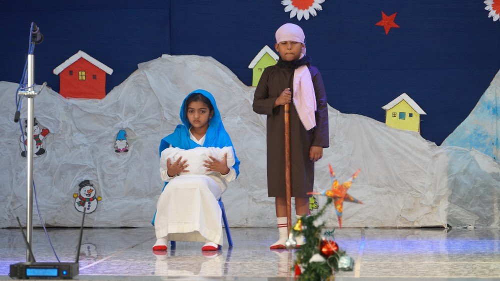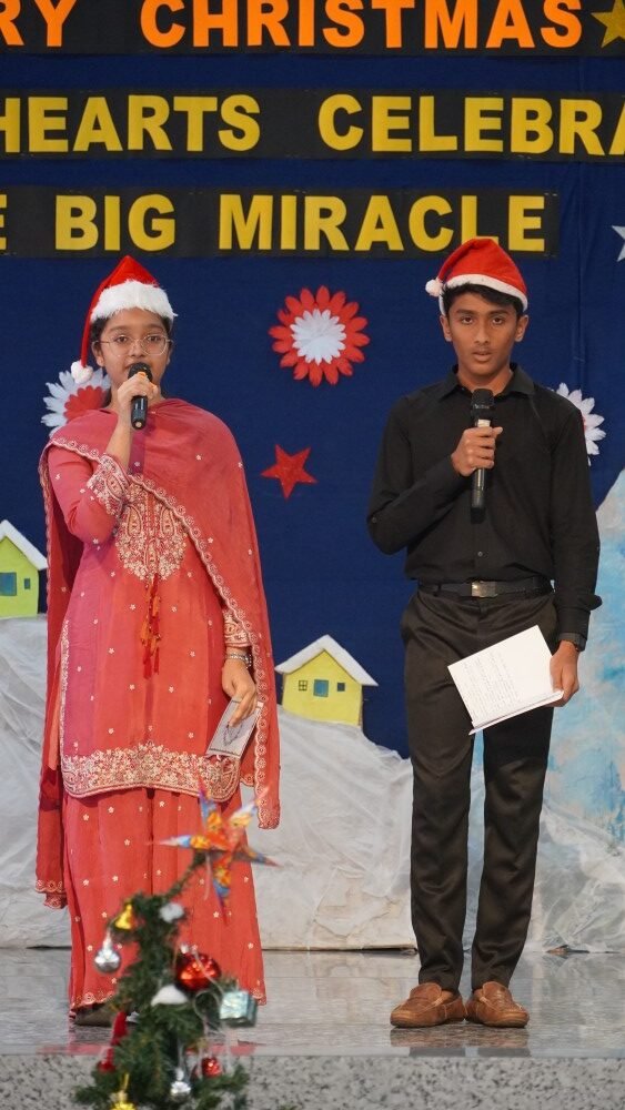 Students then presented a creative segment on Christmas symbols, highlighting the significance of the star, crib, candles, bells, and gifts, each symbol reinforcing the message of hope, light, and love. A touching Nativity scene, accompanied by melodious and appropriate Christmas carols, beautifully portrayed the birth of Jesus and deeply moved the audience.
