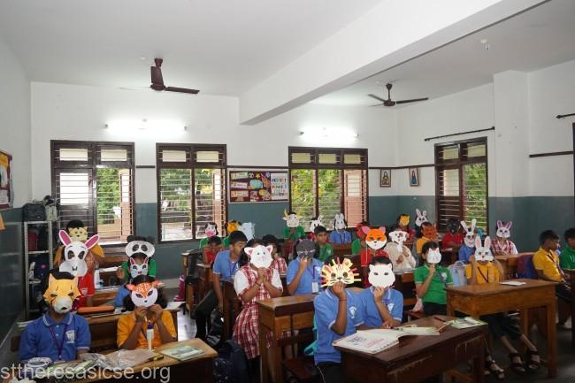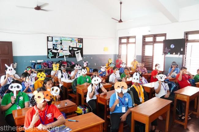 Students from Grades 3 to 5 of St Theresa’s School showcased their artistic flair and imagination during the much-anticipated Animal Mask Making Competition held on the 18th of June. The colorful event brought together young creators from across the elementary grades, each eager to display their unique designs and creative craftsmanship.