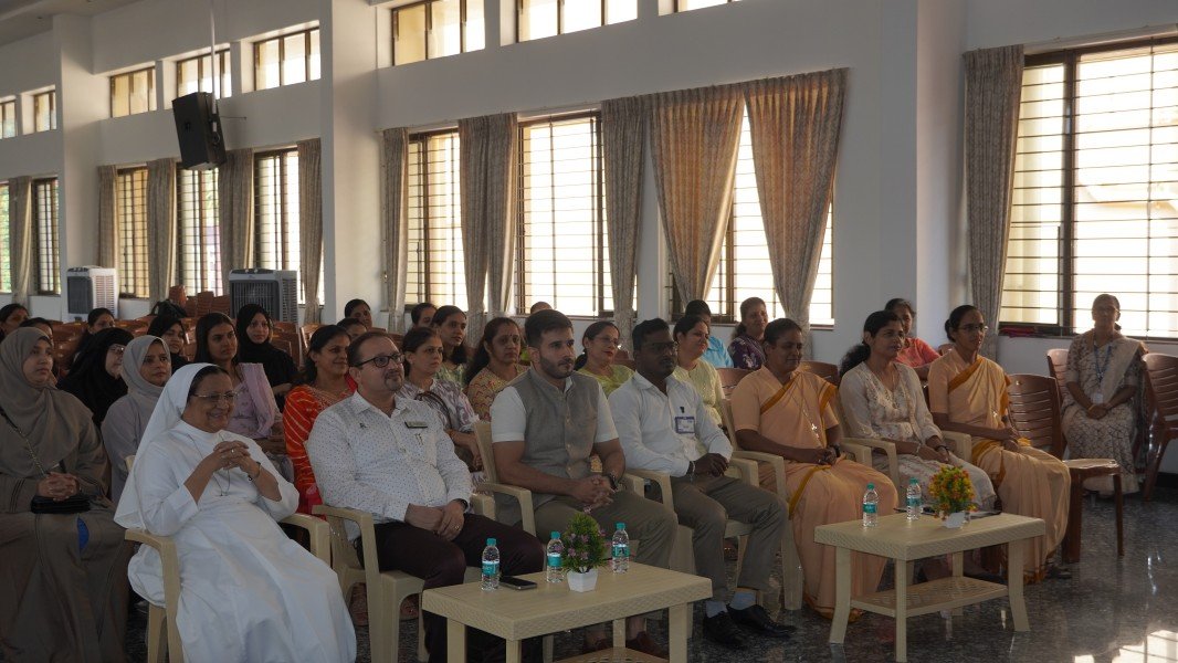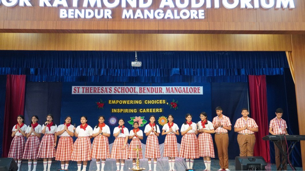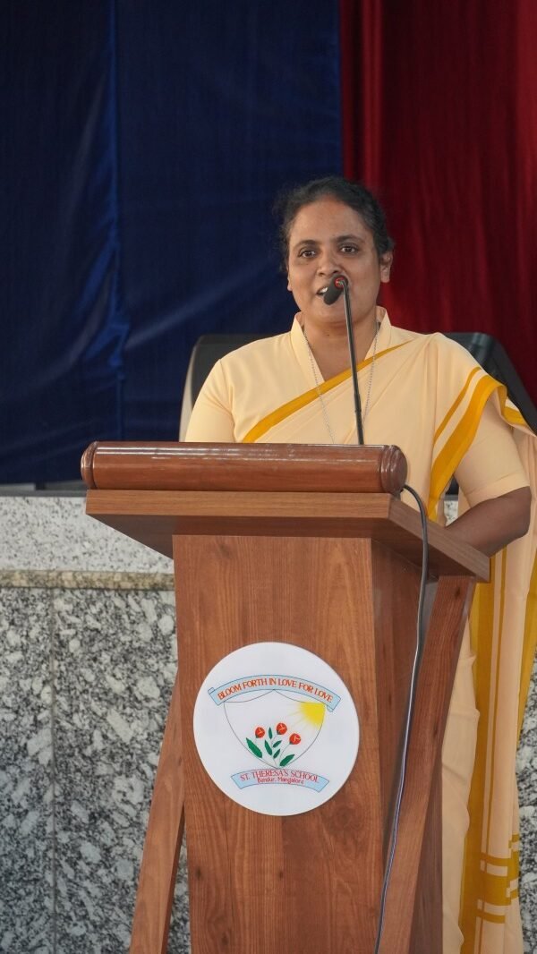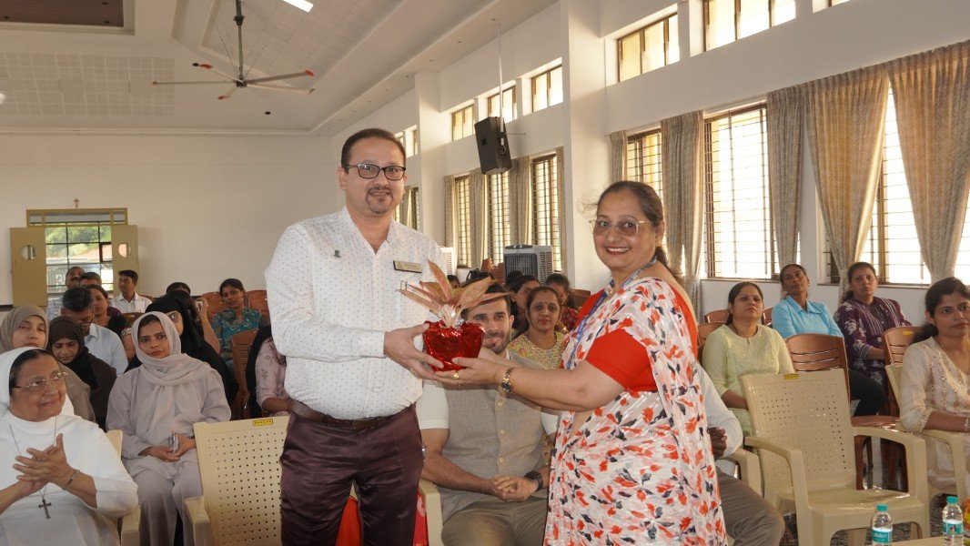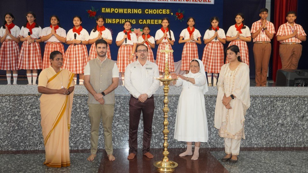 The event commenced with a solemn Invocation and the ceremonial Lighting of the Sacred Lamp. The Correspondent, Sr. Shaila, the Principal, Sr. Lourdes, along with the distinguished speakers—Dr. R. G. D’Souza, Mr. Abhimanyu Tomar, and Mrs. Collette Cabral, PTA Vice-President—graced the occasion by jointly lighting the lamp. This symbolic act was followed by a melodious Prayer Song presented by the school choir, which imbued the gathering with a serene and reflective spirit.