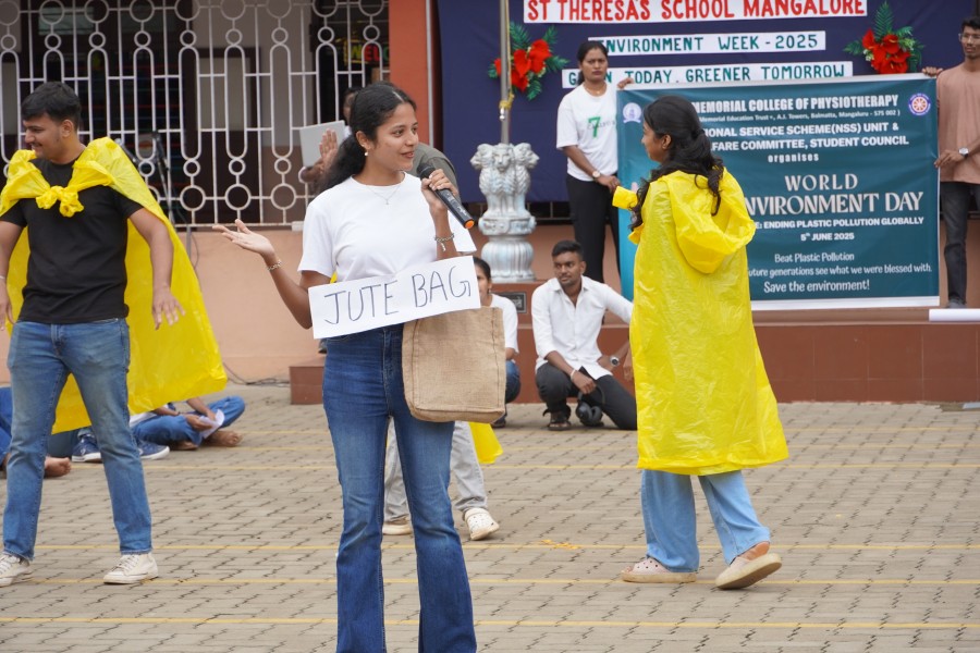 Additionally, the students and faculty of Lakshmi Memorial College of Physiotherapy joined the celebration and presented a powerful street play on the theme “Putting an End to Plastic Pollution.” Their performance effectively conveyed the urgency of reducing plastic use and inspired students to take responsible steps toward environmental sustainability.