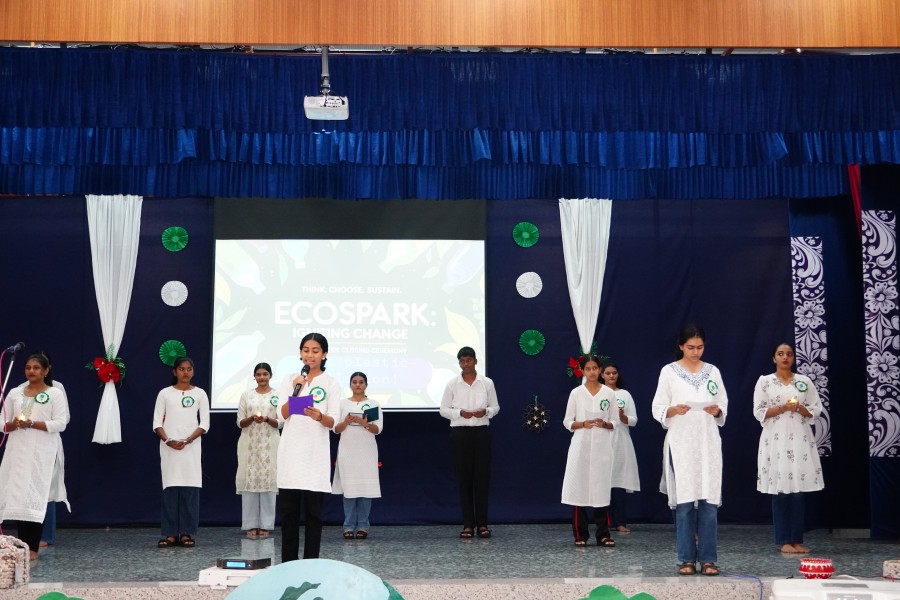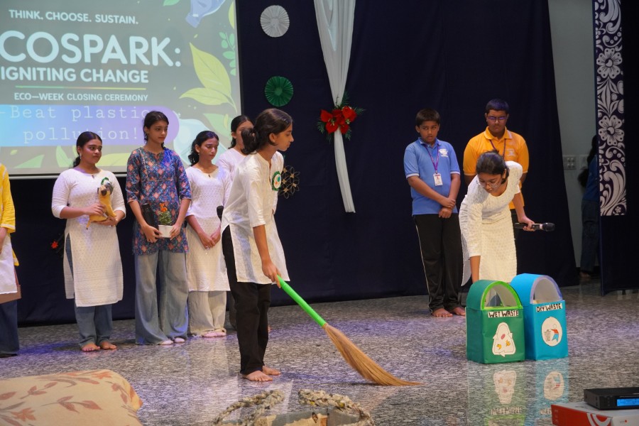 The celebration, held on the school main ground under the school’s theme “Green Today, Greener Tomorrow,” began with a special assembly conducted by the Grade X students of Environmental Applications. The programme featured a meaningful prayer, welcome address, introduction, a vibrant dance, and a thought-provoking skit highlighting the importance of conserving nature and adopting eco-friendly practices.