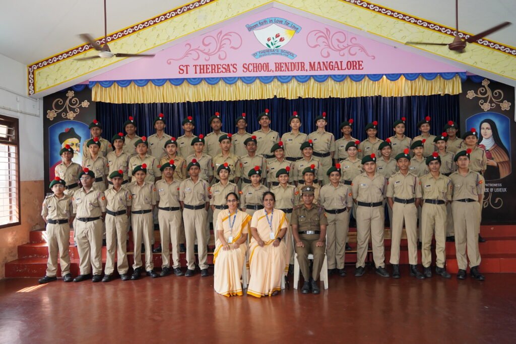 “Unity and Discipline” can make students better citizens of tomorrow. NCC – National cadet Corps has grown over the years to become the country’s premier youth organization. It is now recognised as a variable auxiliary to the education system. St Theresa’s School, Bendur, Mangalore added another feather to its cap by launching the NCC programme in the school. The inauguration of the NCC program was organised on 22 December 2021. The Guests of honour were Lieutenant Colonel Amitabh Singh, Administrative Officer, 18 Karnataka Batallion NCC, and Subedar Major Raju Gaurang, 18 Karnataka Batallion NCC, accompanied by Training JCO, 18 Karnataka Batallion and PI Staff, 18 Karnataka Batallion. The guests were given a floral welcome by Sr Lourdes the Principal.