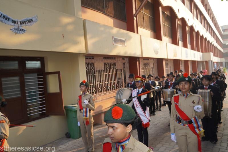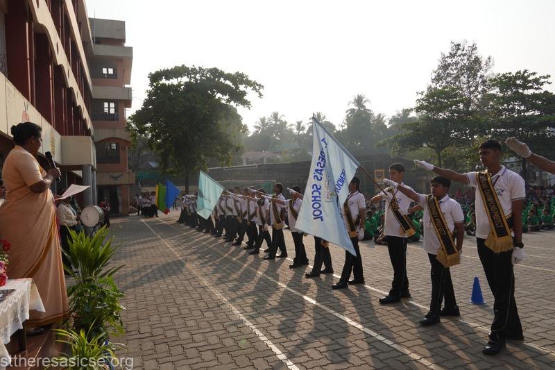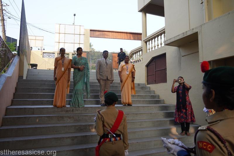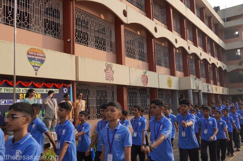 The ceremony commenced with a Guard of Honour accorded to the Chief Guest, Mr. Maanu K. S., FTSC II, Additional District and Sessions Judge (POCSO), who was accompanied by the Principal, Sr. Lourdes, Vice Principal, Sr. Vidya, and other dignitaries. The School Band added ceremonial dignity to the occasion.