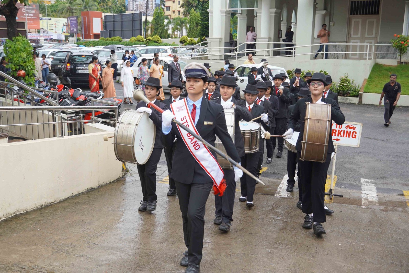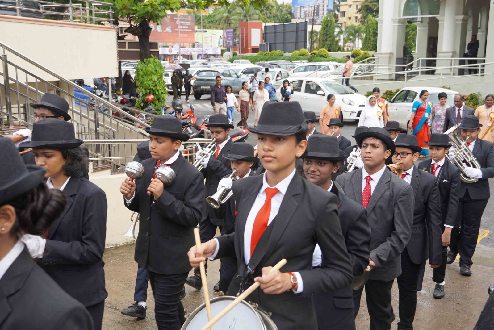 The dignitaries received a ceremonial welcome with a school guard of honour, skillfully performed by the talented school band, led by stick major Neha R, which added an air of prestige to the occasion.