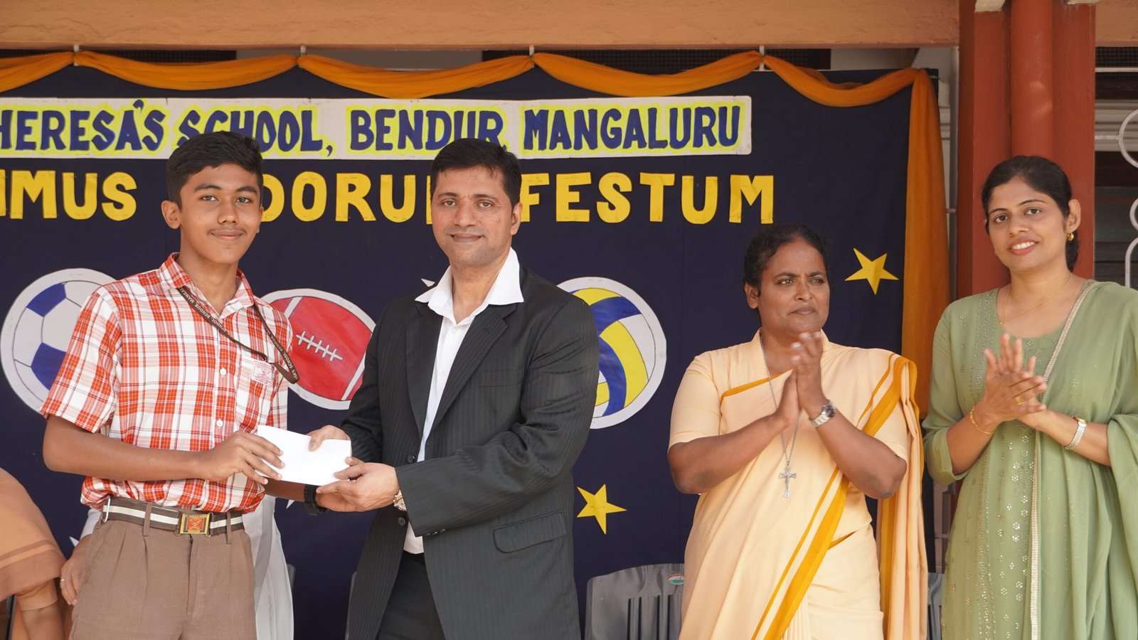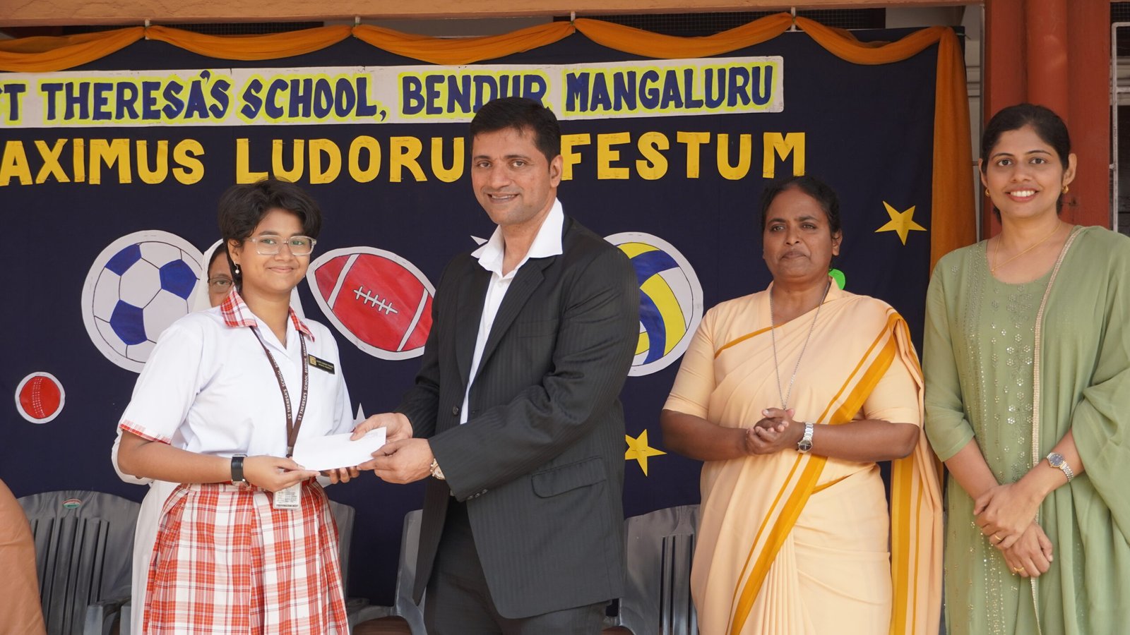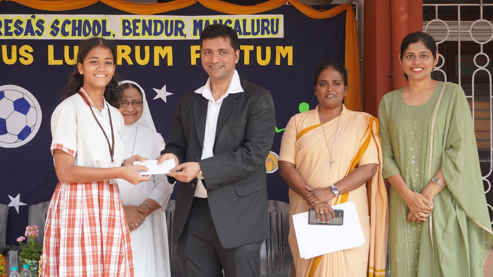 Saneeha was presented with a trophy sponsored by Mr. Goutham Shetty, Chairman of Torpedoes Cricket Club and President of the Tennis Ball Cricket Association, Udupi, along with a cash prize from the school management as a token of appreciation for her dedication and contributions to the school’s sporting legacy.