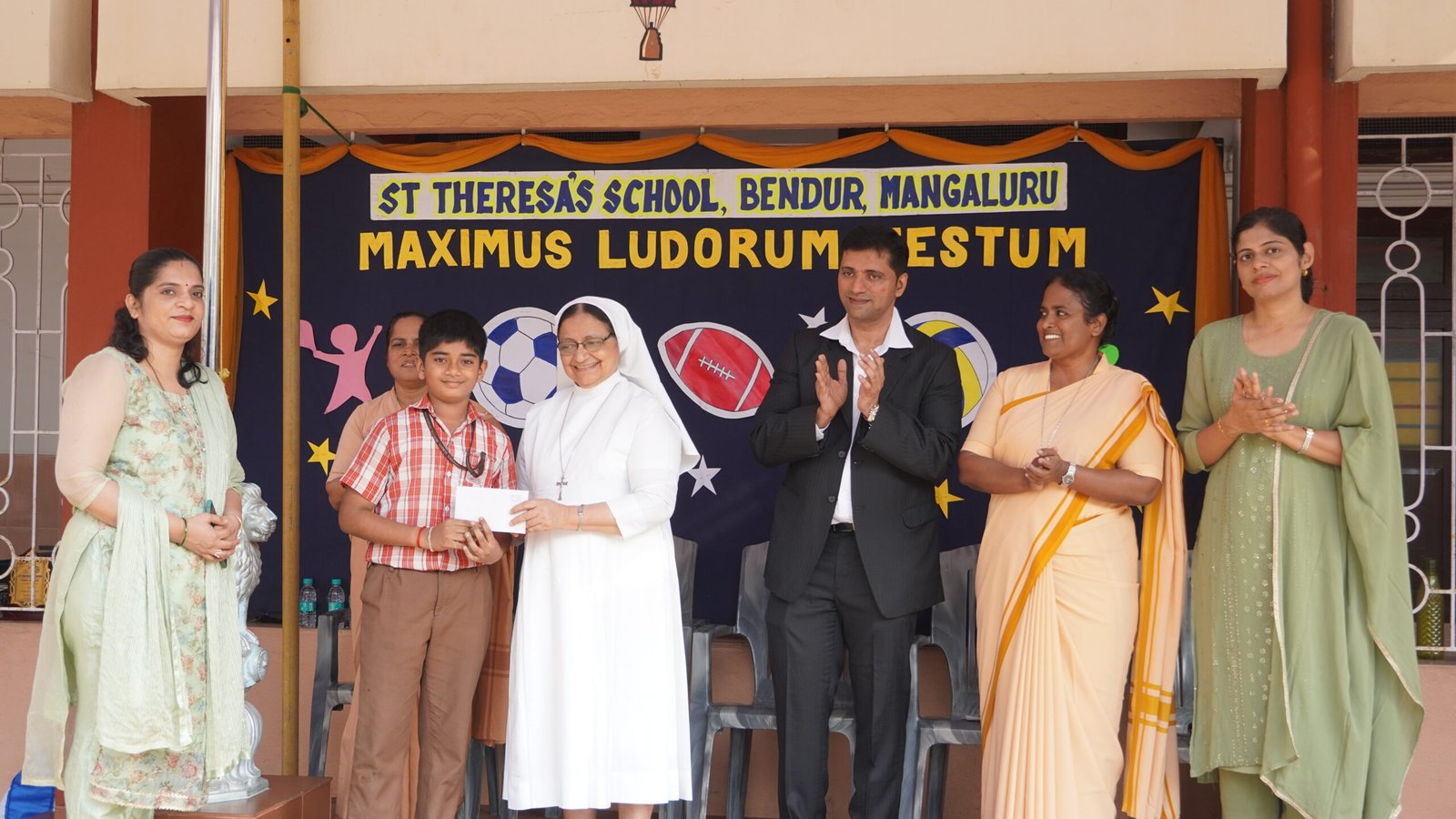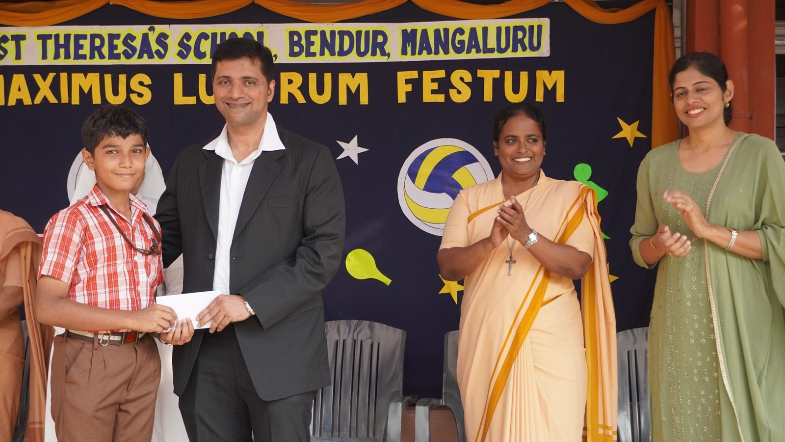 St Theresa’s School proudly celebrated the exceptional achievements of its students at a prestigious scholarship award ceremony, recognizing their talents and hard work across academics, arts, and sports. The event was graced by Chief Guest Mr. Dominic Rosario, along with Sr. Shaila, Correspondent of St Theresa’s School, Principal Sr. Lourdes, and PTA Vice President Mrs. Collete Cabral, who jointly honoured the young achievers on stage.