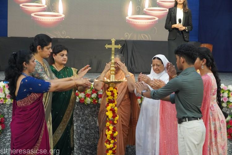 The Theresian Band proudly escorted the dignitaries, setting a tone of honour and elegance for the evening. The occasion was graced by Smt. Elfreeda D’Silva, Member of the Karnataka Public Service Commission, who presided as the Chief Guest. The event was held under the esteemed leadership of Rev. Sr. Rose Celine BS, Superior General of the Bethany Congregation and President of the Bethany Educational Society (BES). She was accompanied by Sr. Shaila BS, Correspondent of the School, and Sr. Lourdes BS, Principal of St. Theresa’s School.