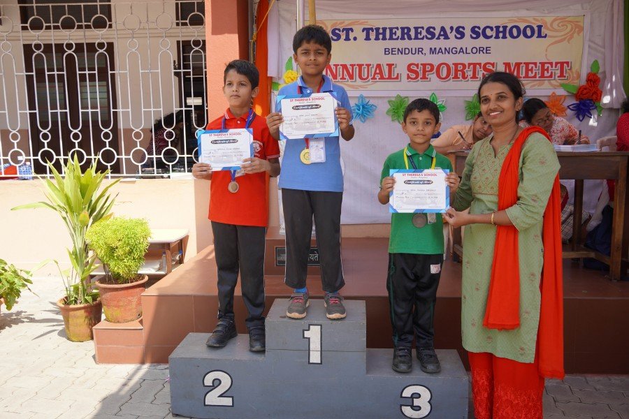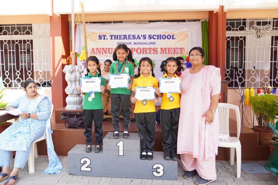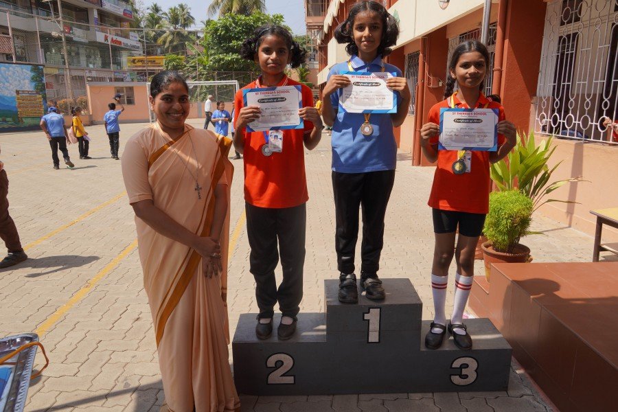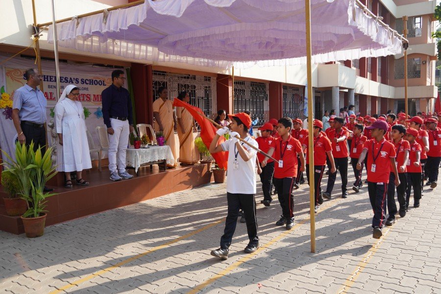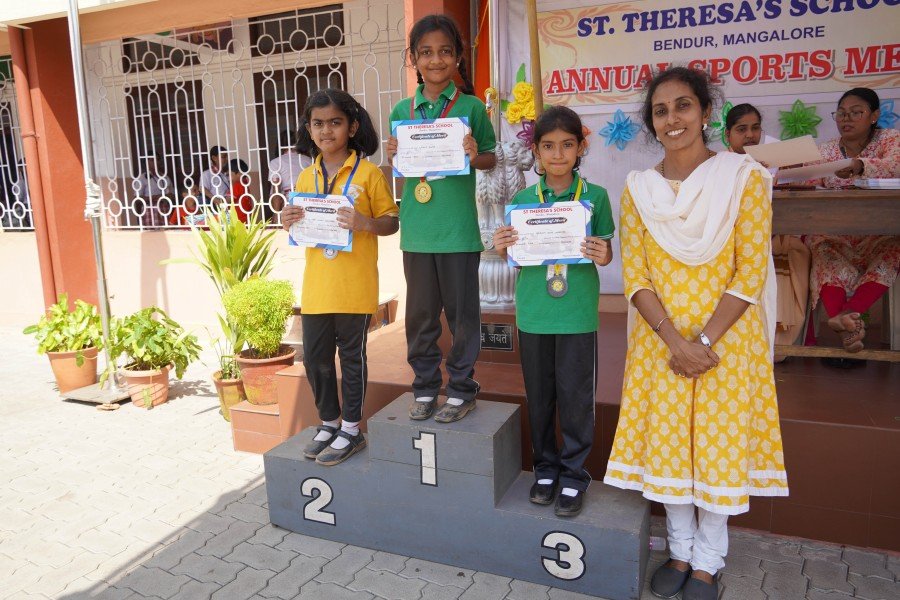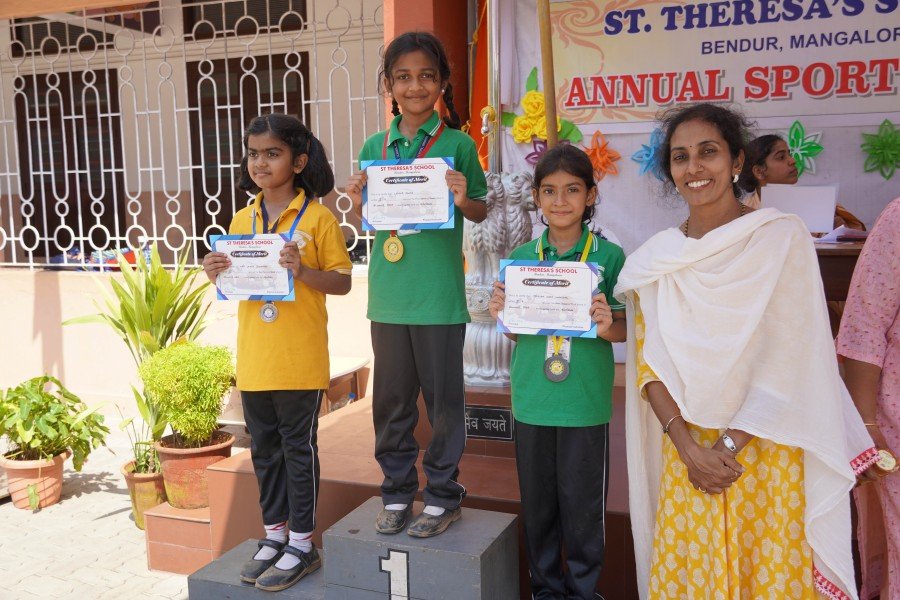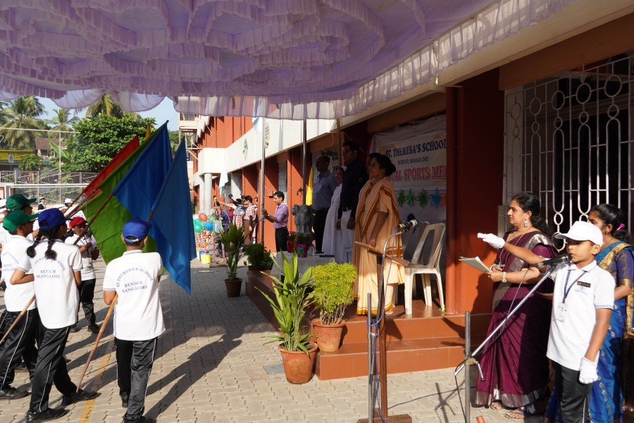 The closing ceremony marked the culmination of the day’s festivities, featuring the lowering of the flag accompanied by the national anthem, symbolizing unity and patriotism. Overall, the Primary Sports Day at St. Theresa’s School was a resounding success, fostering a sense of community, sportsmanship, and healthy competition among the students. The sports meet was successfully conducted under the guidance of PT Instructor Mrs. Anitha Dsouza.
