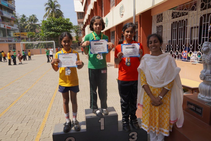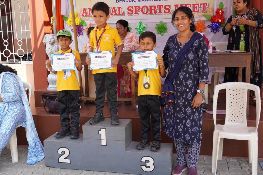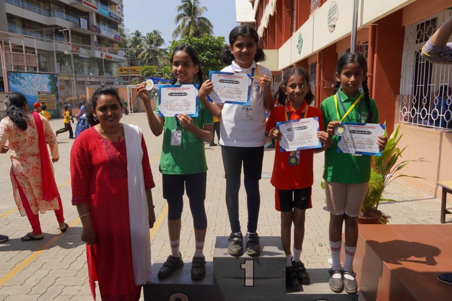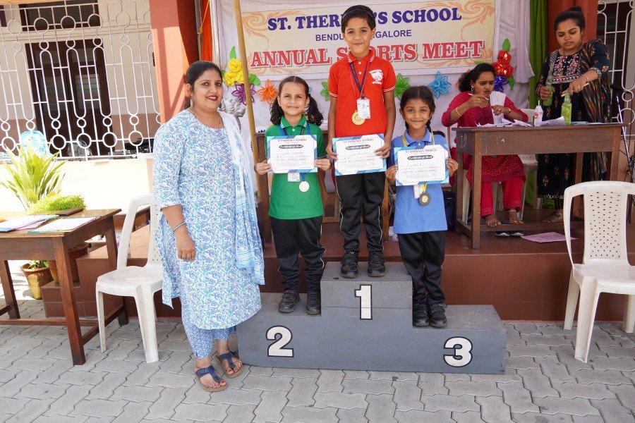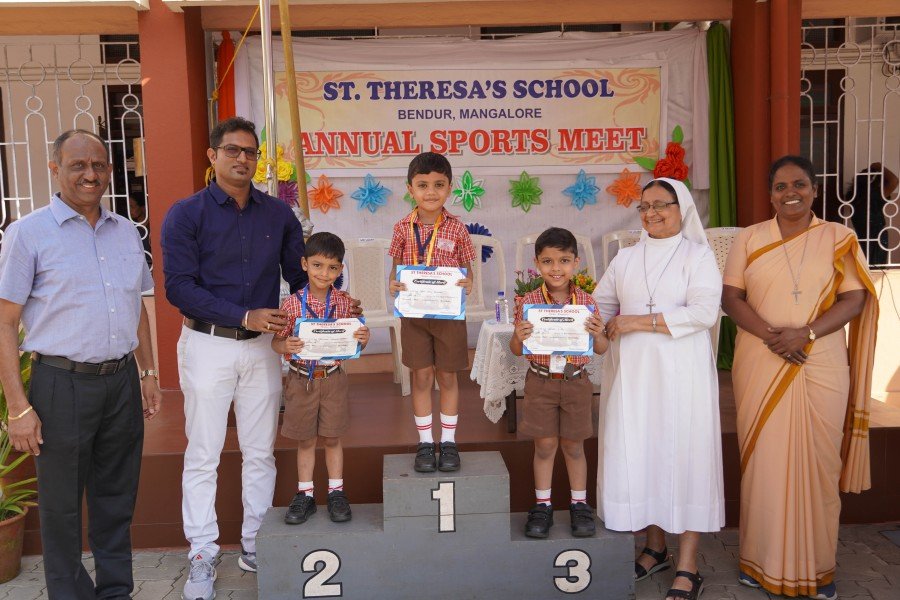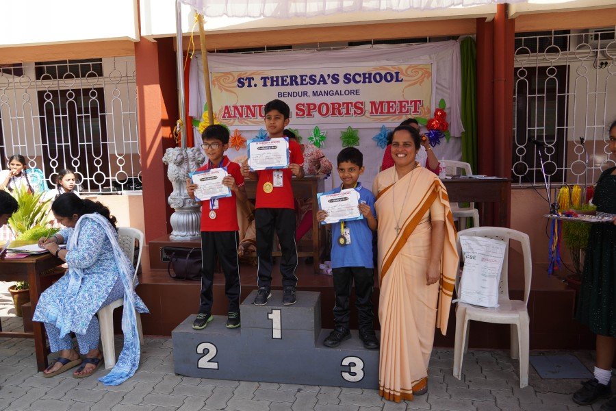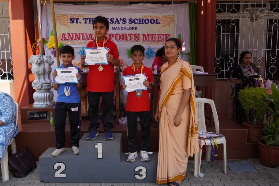 The closing ceremony marked the culmination of the day’s festivities, featuring the lowering of the flag accompanied by the national anthem, symbolizing unity and patriotism. Overall, the Primary Sports Day at St. Theresa’s School was a resounding success, fostering a sense of community, sportsmanship, and healthy competition among the students. The sports meet was successfully conducted under the guidance of PT Instructor Mrs. Anitha Dsouza.