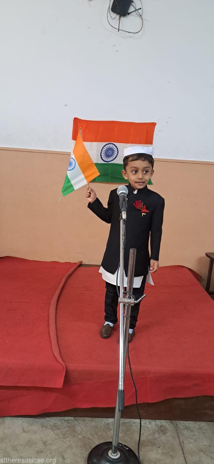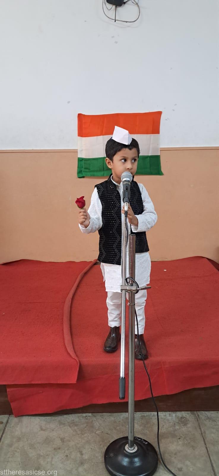 St. Theresa's school organized a speech competition for the kindergarten students on the theme “Freedom Fighters”on 11th August 2025.. The aim of the event was to introduce our young learners to the brave men and women who fought for our country’s independence and to inspire them with values of courage, love for the nation, and respect for history.