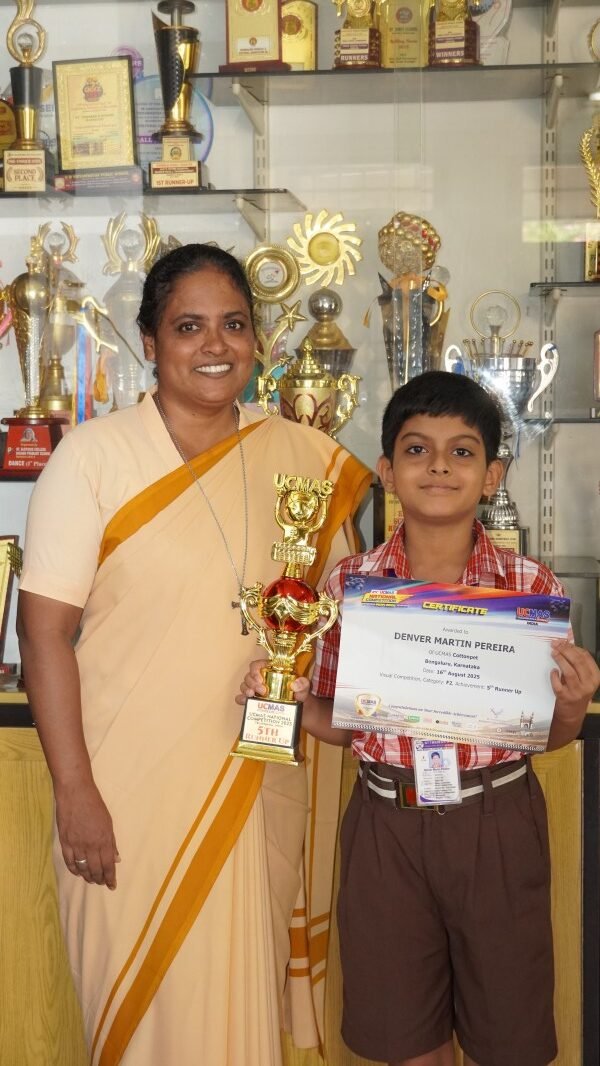 St Theresa’s School, Mangaluru, takes pride in the achievement of its budding talent, Denver Martin Pereira of Class V, who brought laurels to the institution at the All India UCMAS Abacus and Mental Arithmetic Competition held in Bengaluru.